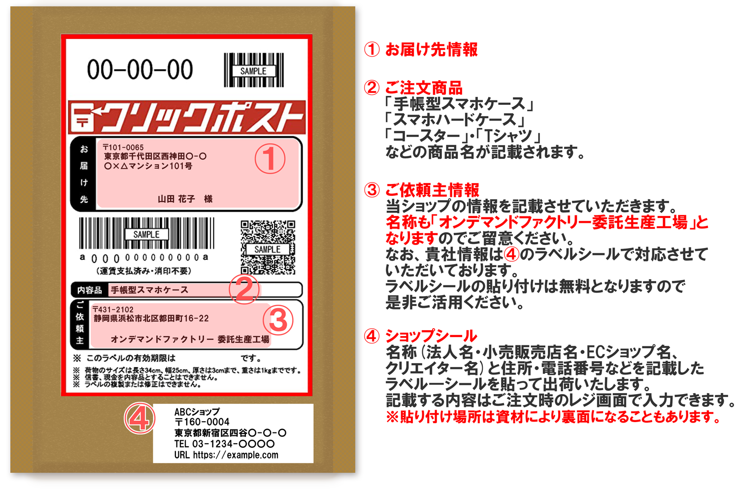 クリックポスト便の宛名、及びショップシールの対応